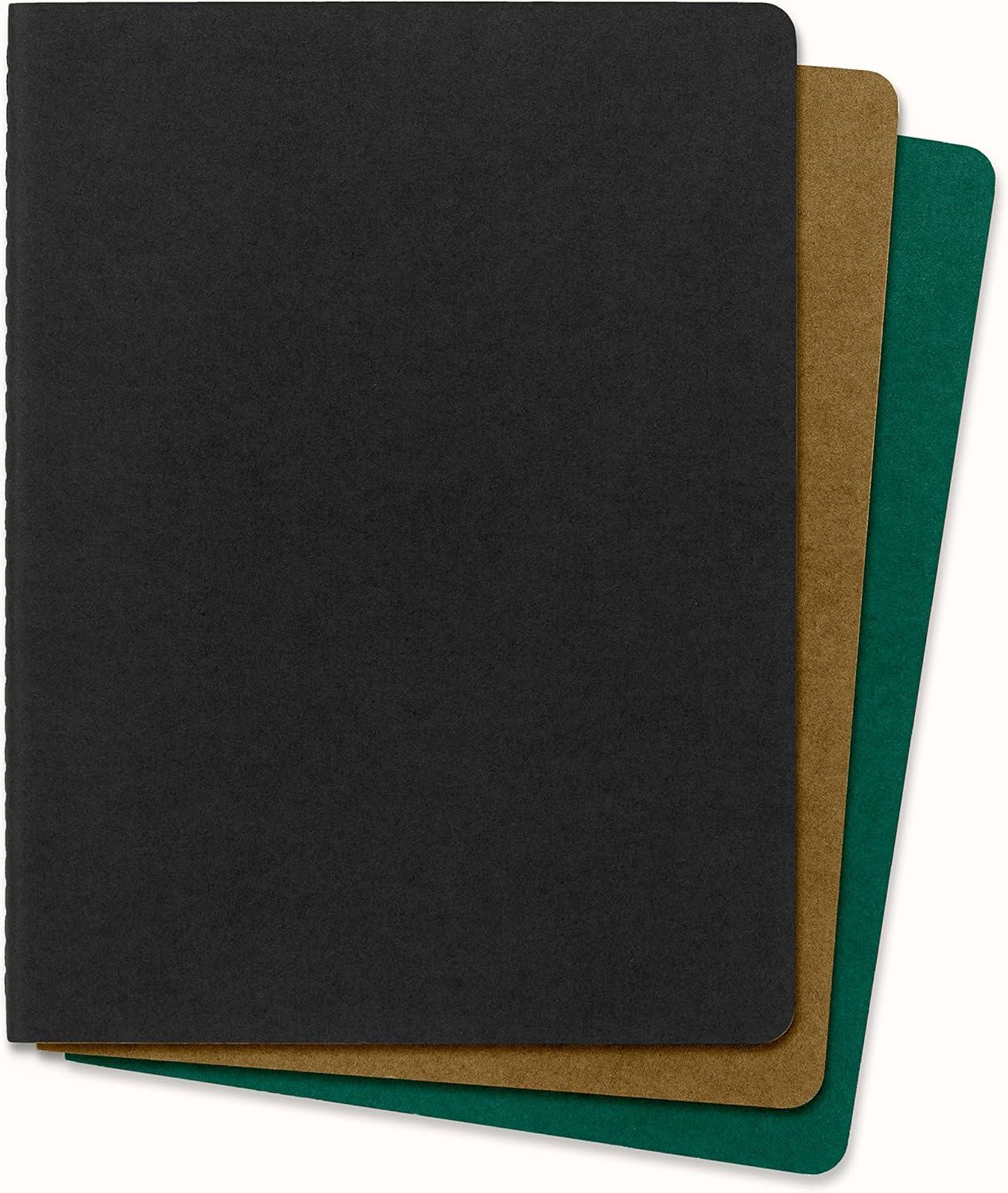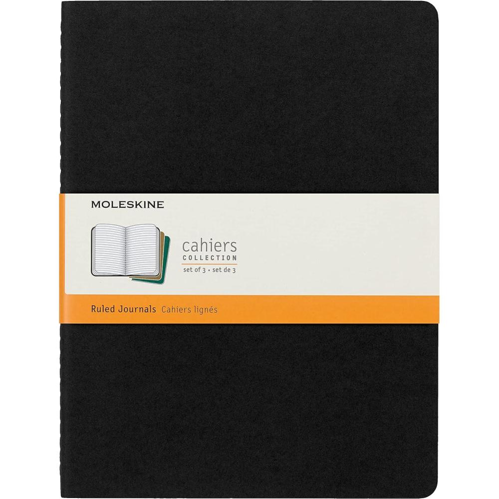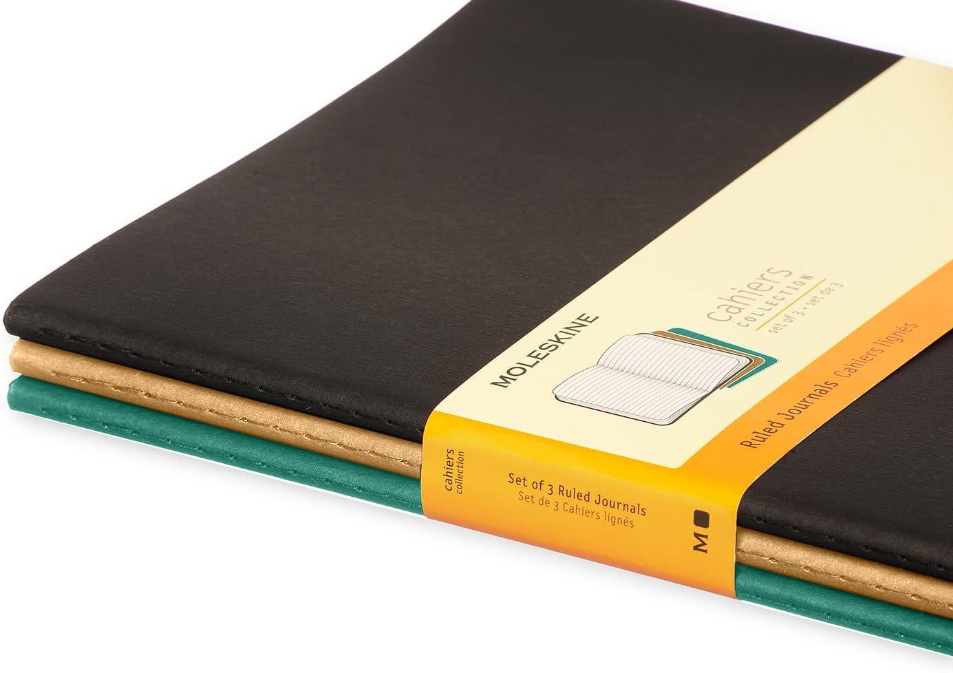 Moleskine Cahier Journal, Soft Cover, Large (5″ x 8.25″) Ruled/Lined, Black, 80 Pages (Set of 3)(Black / Kraft Brown / Myrtle Green)