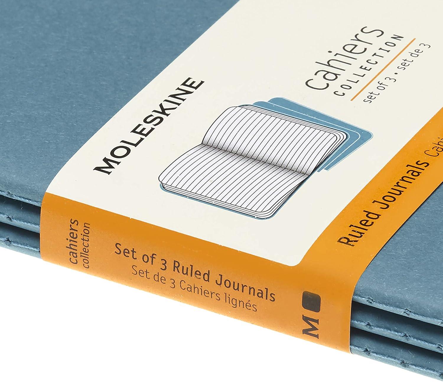 Moleskine Cahier Journal, Soft Cover, Large (5″ x 8.25″) Ruled/Lined, Black, 80 Pages (Set of 3)(Brisk Blue)