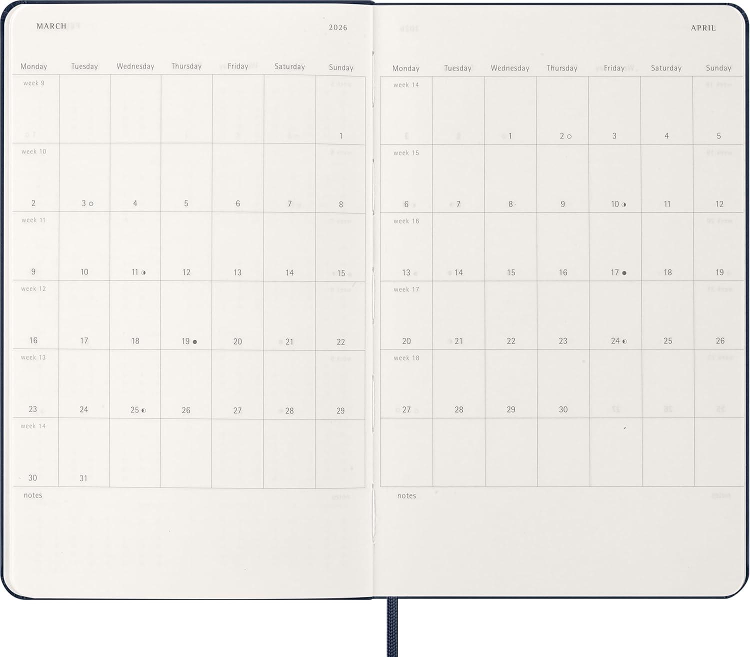 MOLESKINE LARGE-SIZE PLANNER: Spacious 5″ x 8.25″ format offering ample room for detailed schedules, notes, and creative planning—perfect for business, academics, or personal organization.