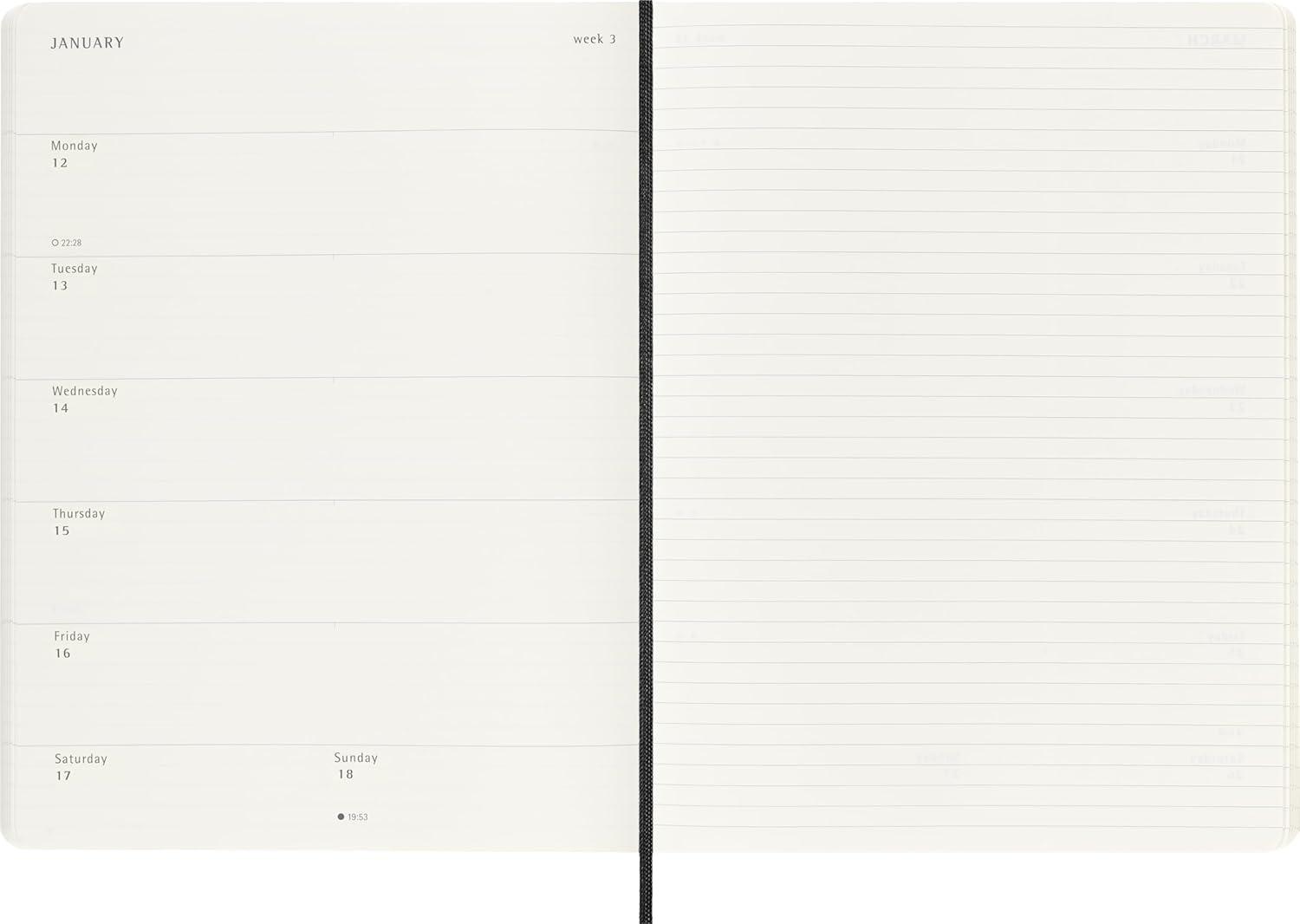 Moleskine Classic 12 Month 2026 Weekly Planner, Soft Cover, XL (7.5″ x 9.75″), Black, 144 pages