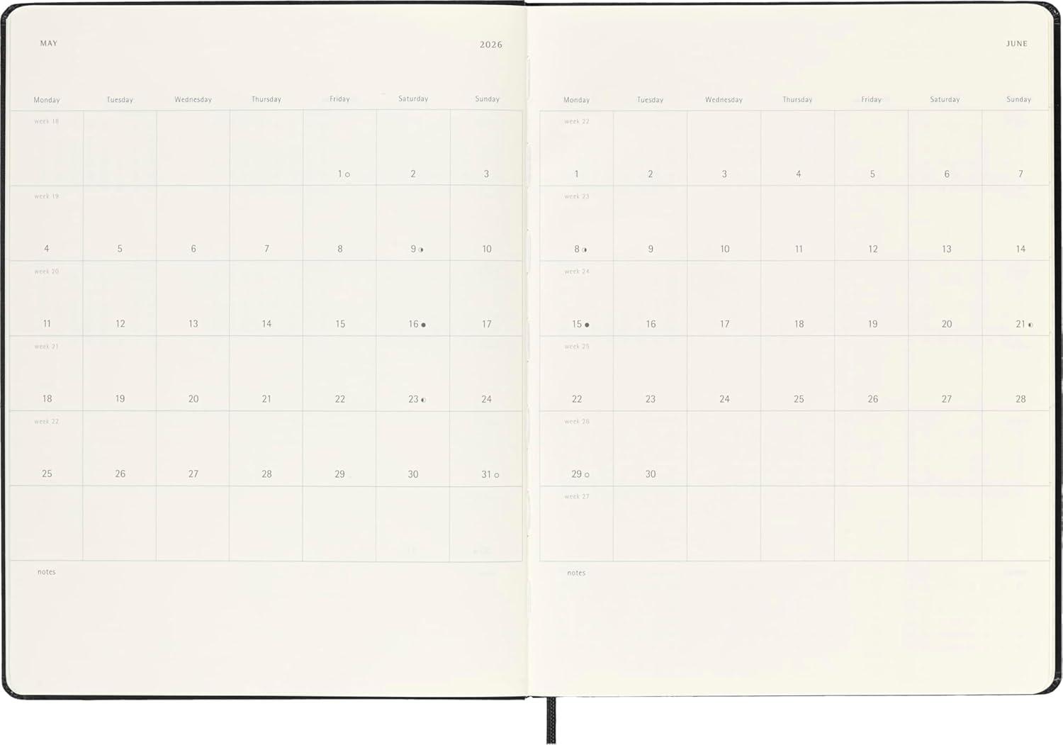 Moleskine Classic 18 Month 2025-2026 Weekly Planner, Hard Cover, XL (7.5″ x 10″), Black, 208 pages