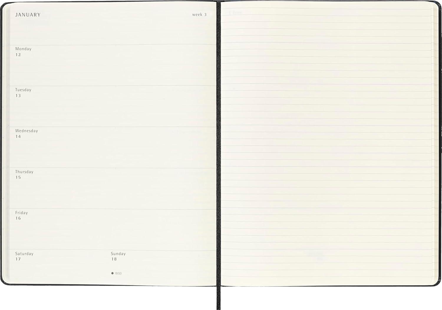 MOLESKINE XL-SIZED PLANNER: Extra-large 7.5″ x 9.75″ format with generous space for comprehensive scheduling, journaling, and project tracking—perfect when you need maximum writing room.