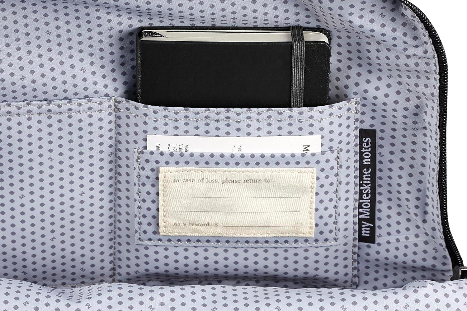 – zip pullers with a matte gunmetal finish featuring an engraved Moleskine logo and debossed monogram logo on front