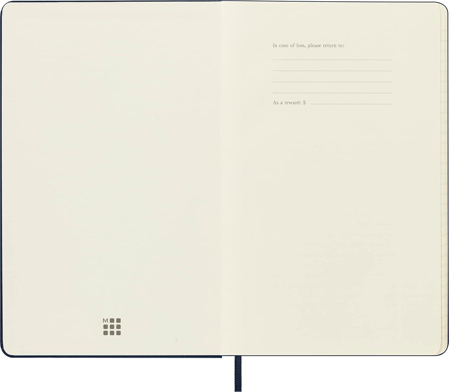 The Moleskine Classic Notebooks is a reliable travel companion, perfect for calculations, thoughts and passing notes. This sapphire blue hard cover notebook has rounded corners, acid free paper, a bookmark, an elastic closure and an expandable inner pocket.
