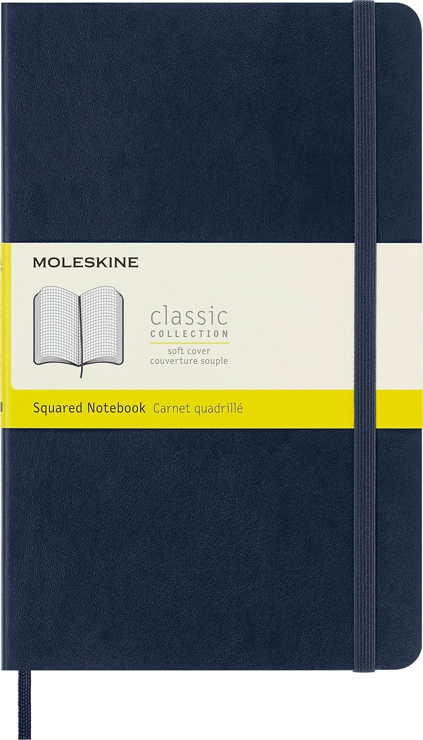 We believe that taking notes by hand is the best way to generate ideas, and that creativity blossoms with every stroke on the page. This elegant, well-designed tool is the perfect space to put pen to paper. The Classic Notebook traces its origins to the legendary notebooks used by artists and writers over the centuries – every word and sketch you add to its pages make you part of the story. – soft cover available in black, red, blue and other colors – rounded corners, elastic closure and matching ribbon bookmark – ivory-colored, 70 g/m², acid-free paper: plain, ruled, dotted or squared – 'In case of loss' printed on the flyleaf – expandable inner pocket in the back – reusable paperband B-SIDE featuring additional printed tools – lies flat, opens at 180° – the history of Moleskine is inside – The paper of this Moleskine object is made of material from well-managed, FSC™-certified forests and other controlled sources.