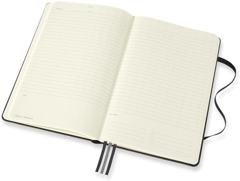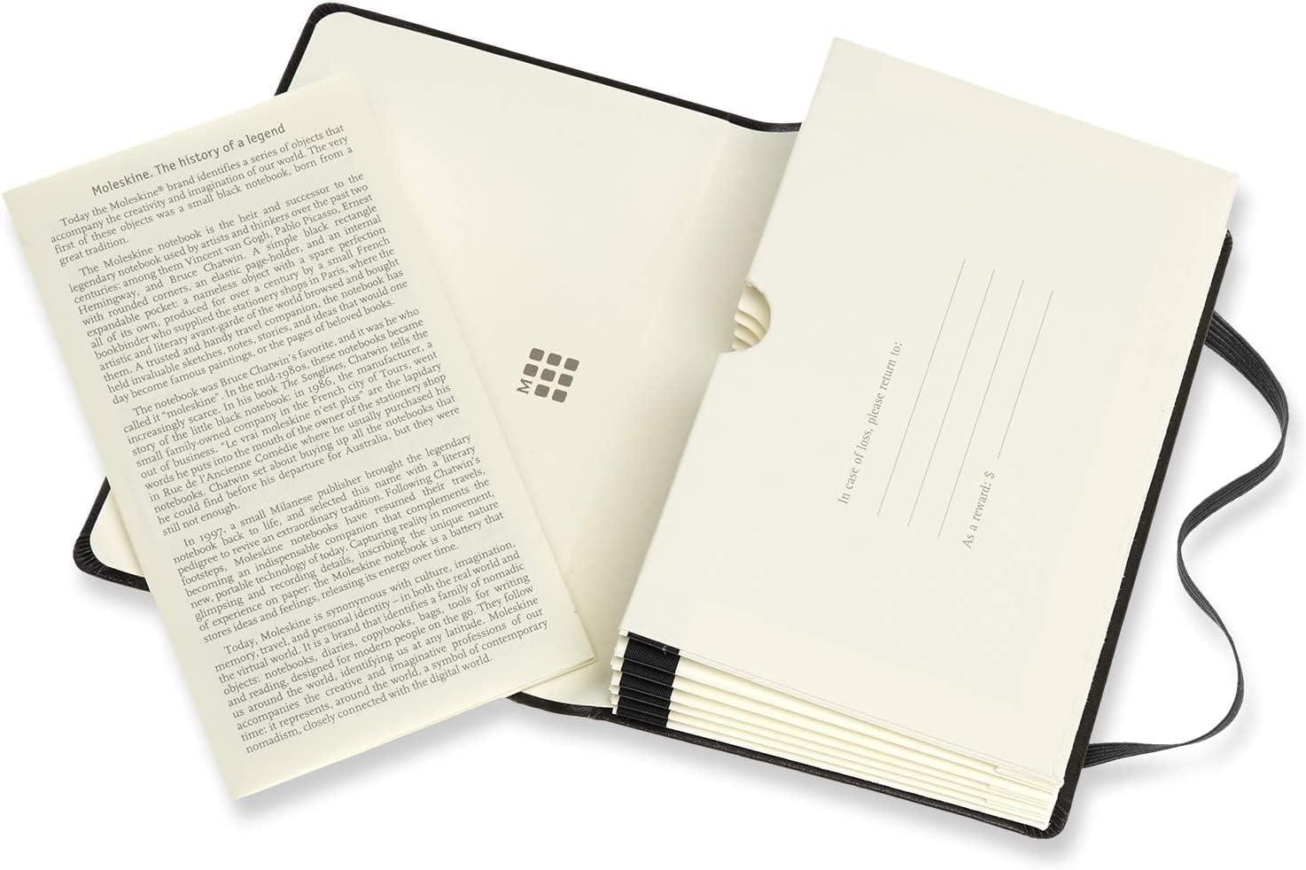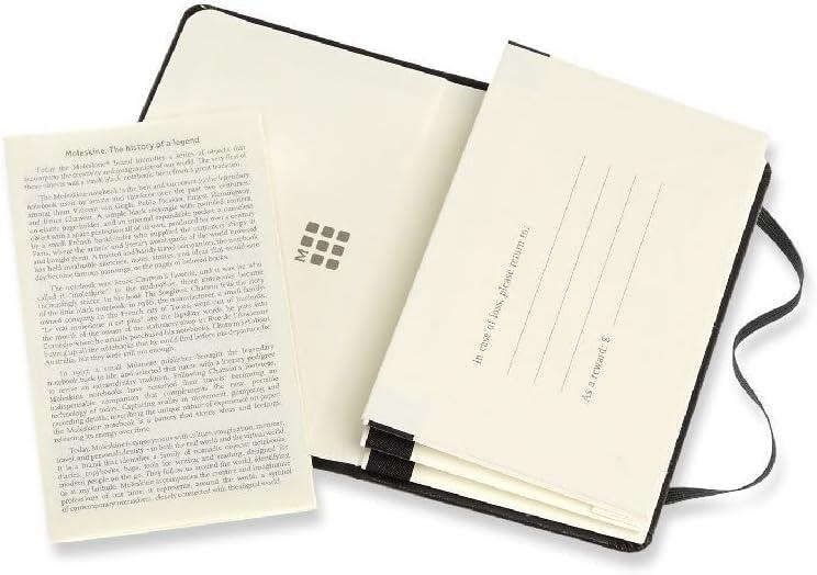 Available in a variety of colors, this notebook contains everything today's professional needs to stay organized. The simple graphic layout is designed for taking notes in meetings while special sections are useful for planning projects and keeping track of important lists. Each book comes with rounded corners, acid-free paper, bookmark ribbon, elastic closure and expandable inner pocket that contains the Moleskine history inside.