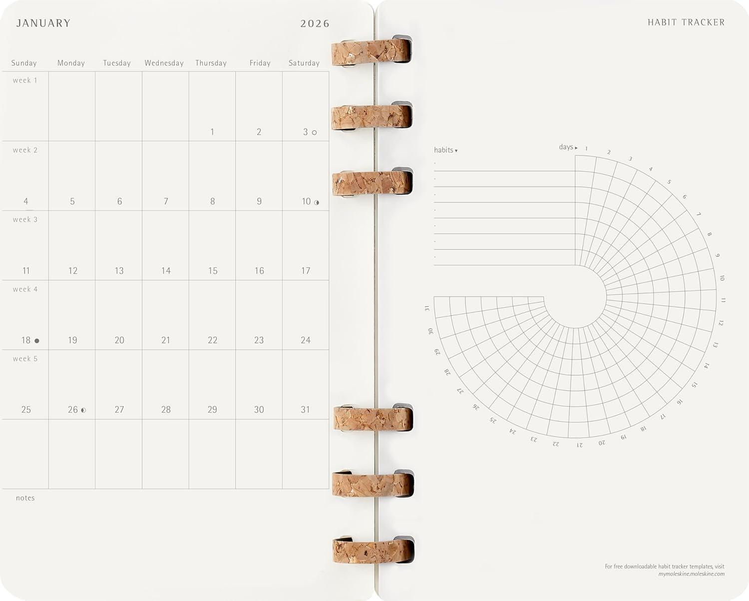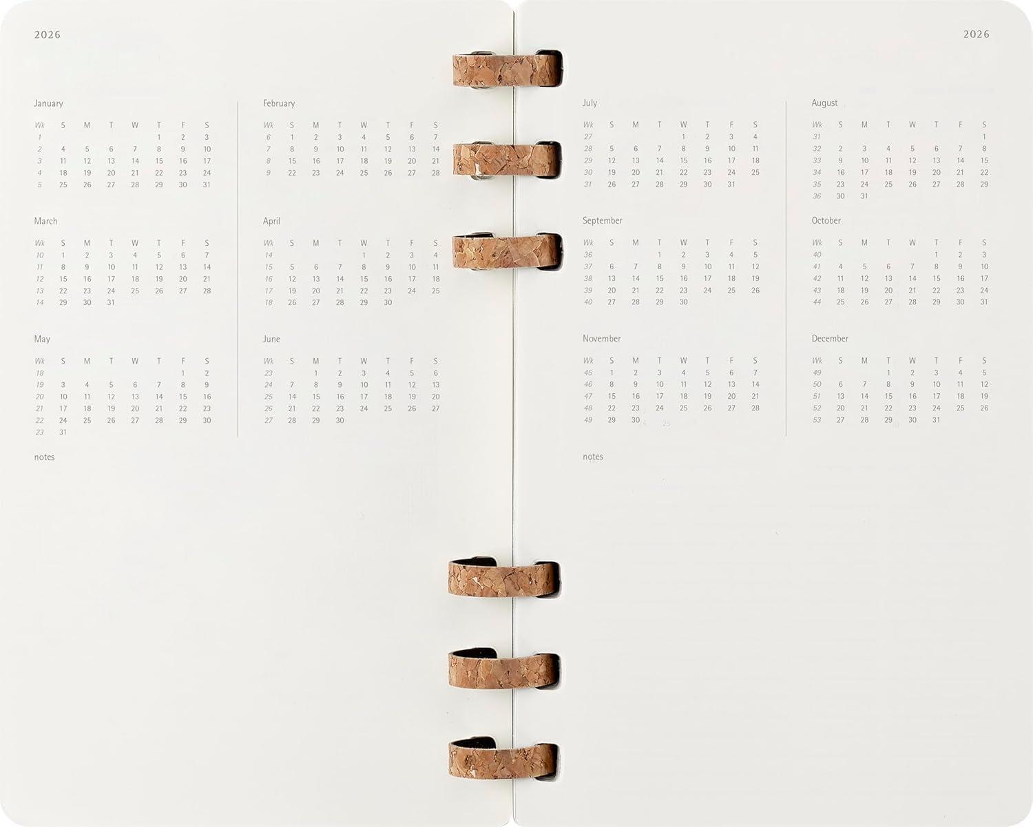 Moleskine Spiral 12 Month 2026 Solar Year Planner, Soft Cover, Large (5″ x 8.25″), Black, 200 pages