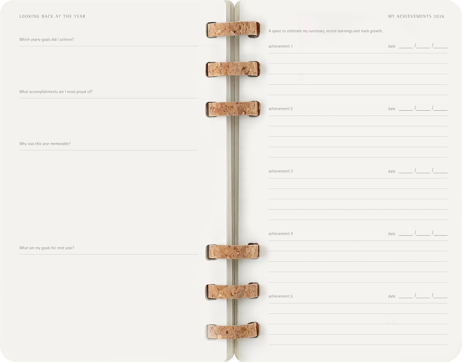 The 2026 Life Planner is made to revolve around you, putting your future firmly in your hands. It is structured to bring balance to all areas of your life thanks to a mix of weekly and monthly planning alongside sections that focus on tracking your mood and wellness.