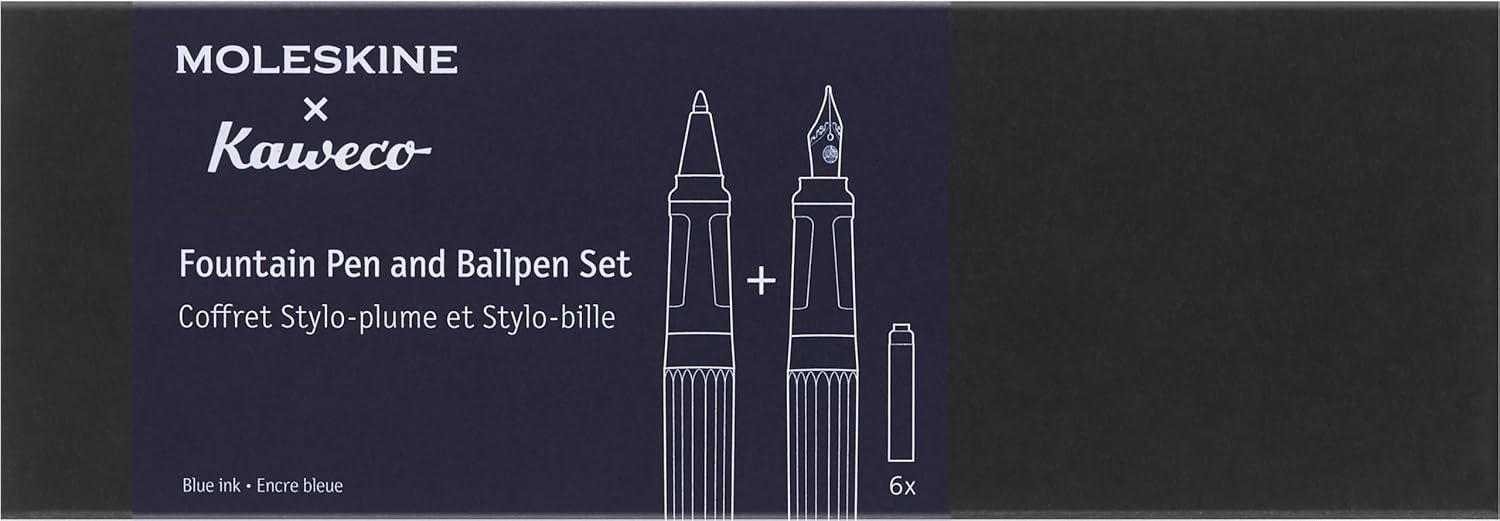 Moleskine x Kaweco, Fountain Pen and Ballpen Set, Medium Nib/1.0mm Point, Blue with Blue Ink(Blue)